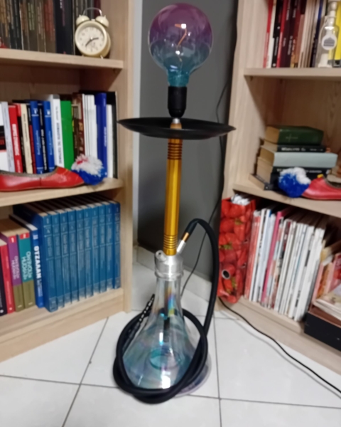 Το φωτιστικό αυτό, κατασκευασμένο από παραδοσιακό ναργιλέ, αποτελεί μια εντυπωσιακή διακοσμητική προσθήκη σε κάθε χώρο. Ο συνδυασμός του μεταλλικού και γυάλινου σχεδίου του ναργιλέ με τον απαλό φωτισμό δημιουργεί μια ιδιαίτερη ατμόσφαιρα που αποπνέει κομψότητα και ανατολίτικο στυλ.